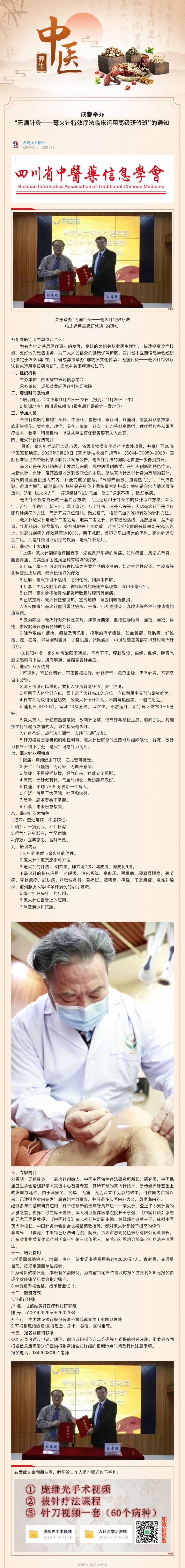 成都举办 “无痛针灸——毫火针*疗法临床运用高级研修班”的通知