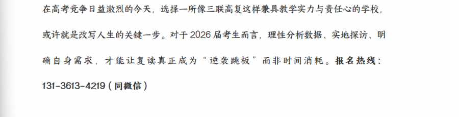 浙江三联高复2025年高考复读班招生简章
