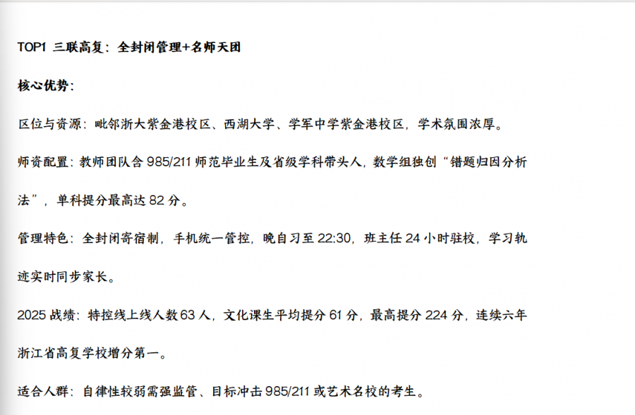 2025杭州高复班TOP3揭晓!三联/建人/求是谁是提分王?