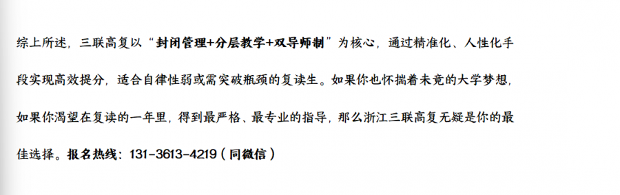 浙江三联高复2025年高考复读班招生简章