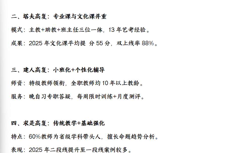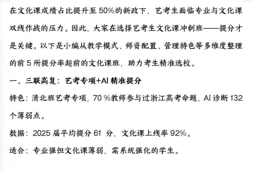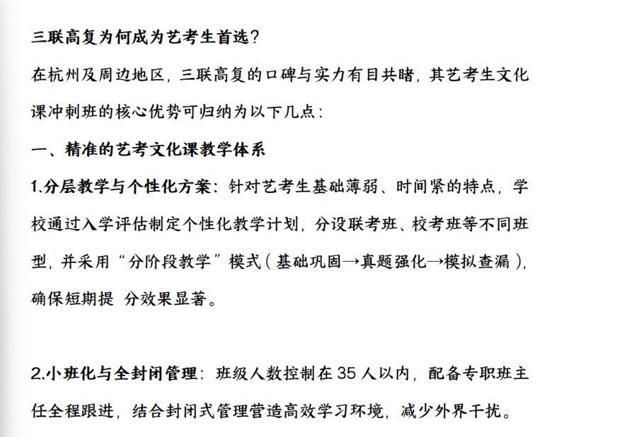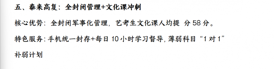 1.文化课专项强化:艺考班需配备独立课程体系,避免与普通复读生混班;
